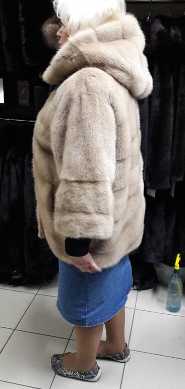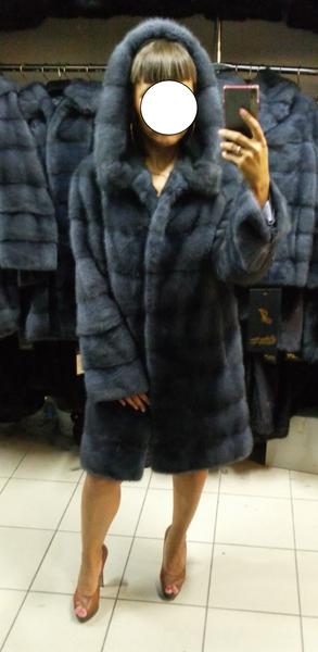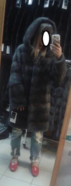 36.Шубка 75см 46/52рр капюшон-кобра СОБОЛЬ полностью, кулиска в подоле, рукав 3/4