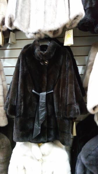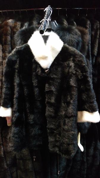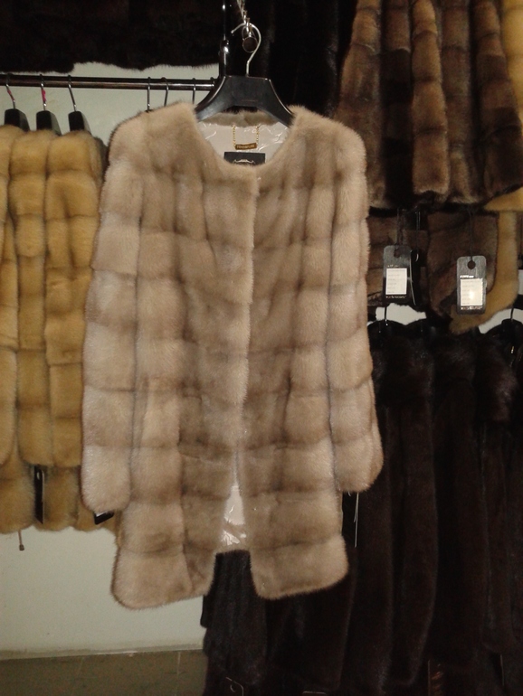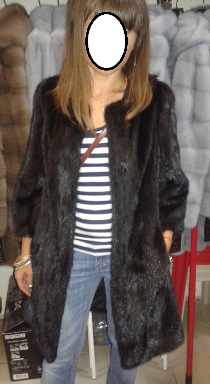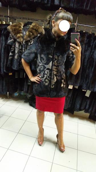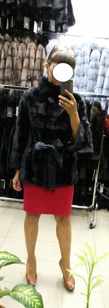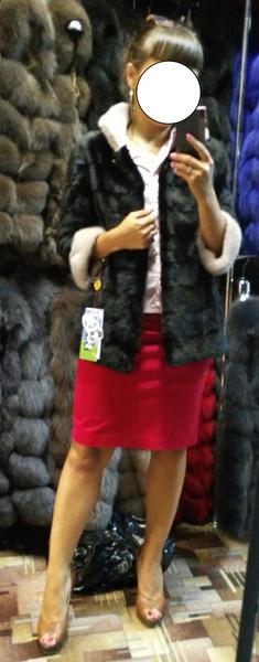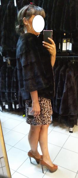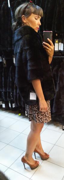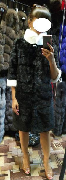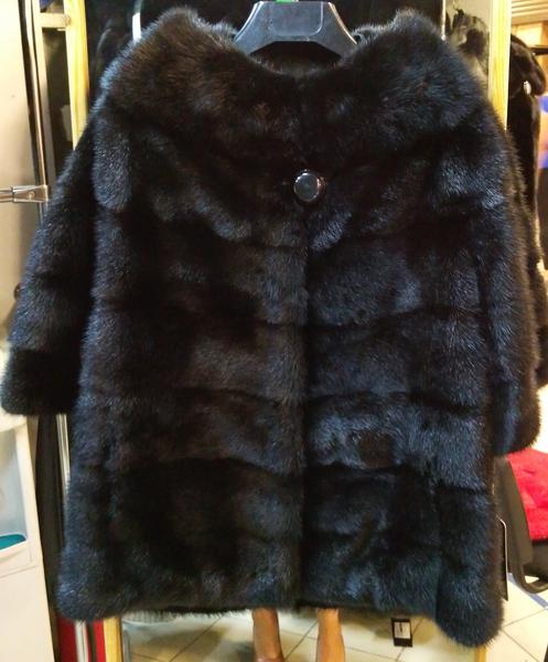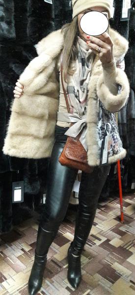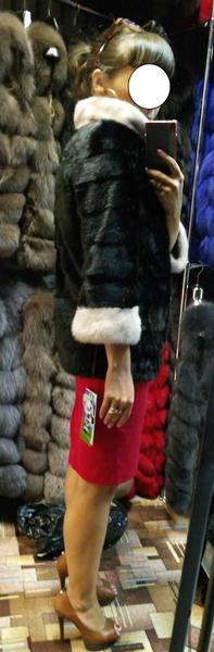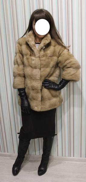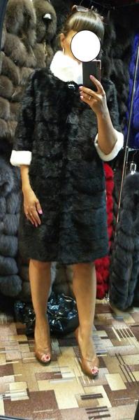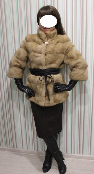 1Двустороняя шубка норочка, автоледи, длинна 65см. рукав 7/8, стойка