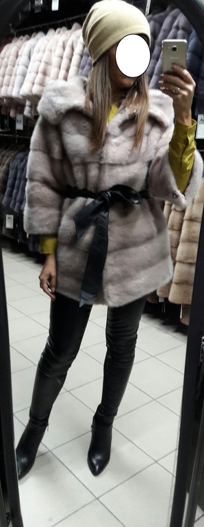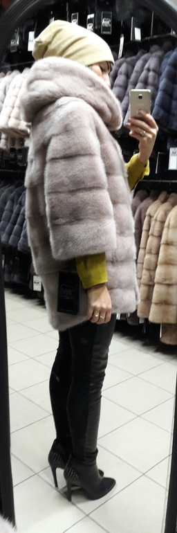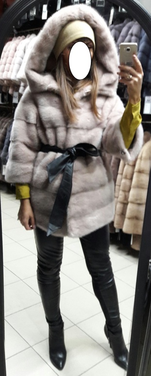 Есть и с капюшоном такая же модлька 65см в цвете лиловый цена 47000+7%