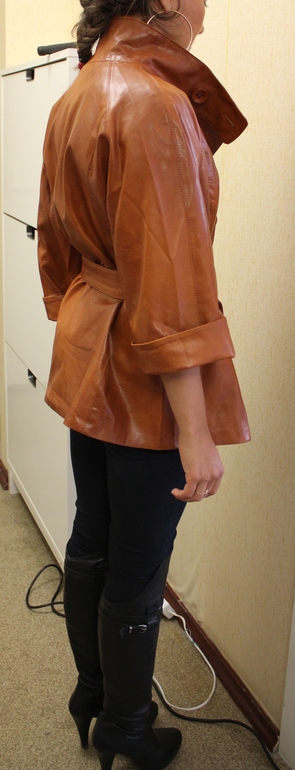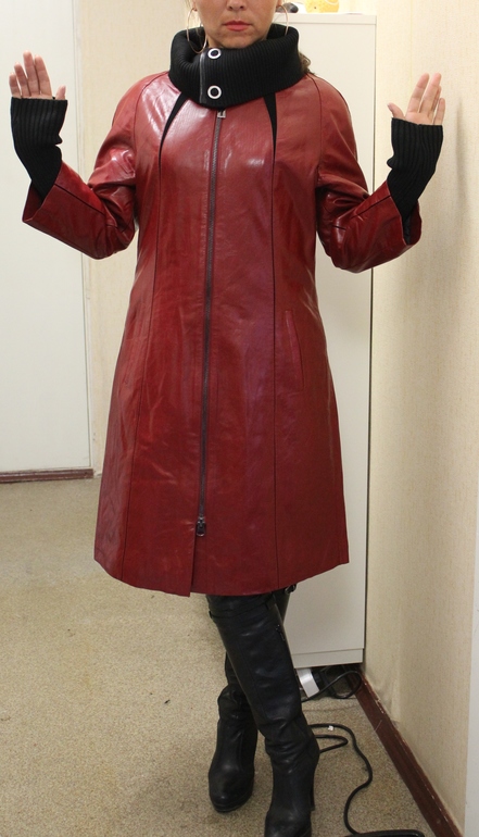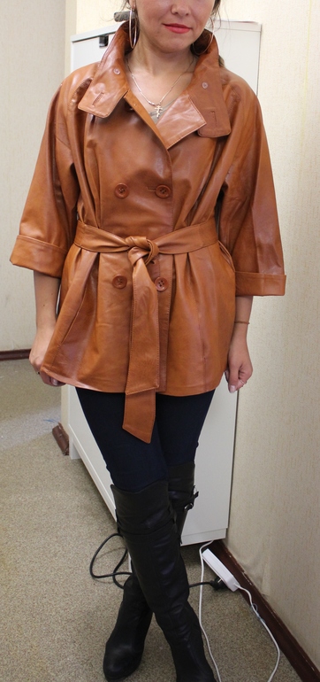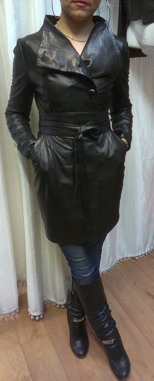 шикарная выделка, кожа наимегчайшая, отлично садится, можно носитть с двух сторон. подойдет как и на высоких, тк и на маленький рост, т.к можно подвернуть манжетики
