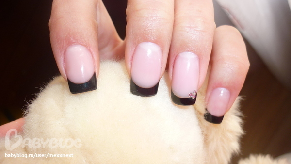 Следите чтобы удлинение везде одинаковое было и длина френча. Я сначала делаю безымянный или средний, по нему ровняю остальные, не стесняйтесь прикладывать и сравнивать ноготки. Улыбки дожны быть одинаковыми по длине на всех пальцах, удлинение одинаковое по длине на указательном, среднем и безымянном, удлинение на мизинцах и больших по усмотрению зависит от ширины нат.ногтя (бывает что мизинец очень широкий, тогда его делаю как указательный).