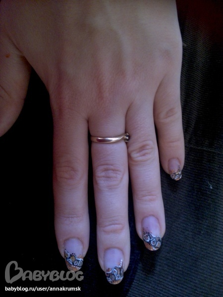 Очень понравилась. Очень общительная, столько в ней положительной энергиии...делает свою работу очень старательно. Правда на сколько я поняла, она больше практикует френч, а хотелось бы разнообразия. Тот, который я хотела рисунок-абстракцию она не смогла сделать, но обещала к следующему разу посмотреть как он делается.