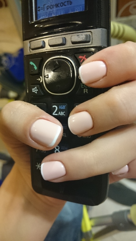 Девочки, доброго времени! Сегодня я сделала второй раз в жизни сама себе обрезной маникюр и первый раз покрытие гелем. Конечно, порезалась немного ( но и в салоне не раз резали), а покрытие для меня вообще было из раздела "полет в космос". Косяки свои вижу, но для меня, человека который всю жизнь ухаживал за ногтями в салоне, это шедевр! я радуюсь как ребенок)