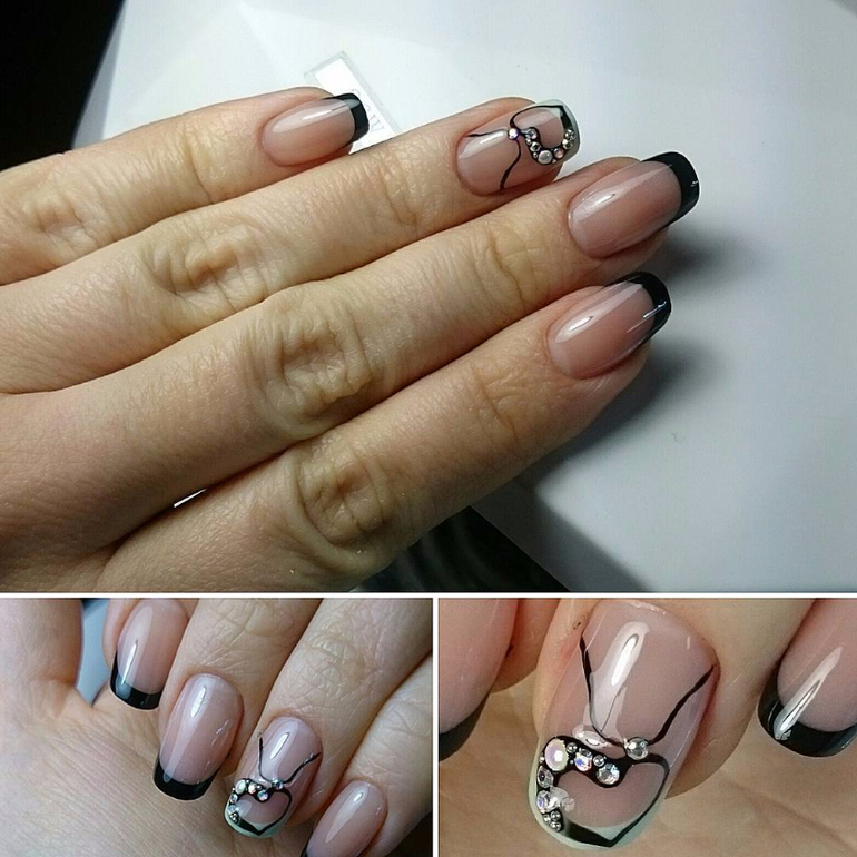 Очень часто мои девочки приходят и говорят: ой,я хочу ногти, как твои :) Вот эти были самые популярные :) Черный френч с бирюзой, дизайн гель краской и инкрустация камнями.