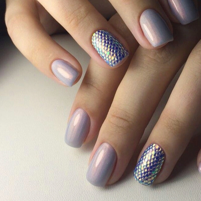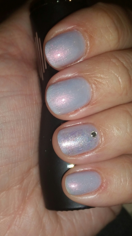 Покрытие гель-лак.Может это втирка, типа розового жемчуга, но на какой цвет тогда? На серый или бледно-сиреневый?