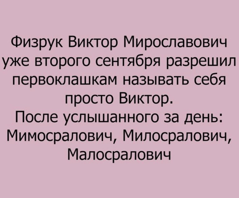 Лучше бы заставлял отжиматься за каждую ошибку или еще какое наказание ввел - мигом бы выучили. А то с дикцией ну прям такие проблемы у всех😬 Но это анекдот, понятно) Хотя когда в реальной жизни не могут выговорить какие-то имена и отчества (не самые сложные), то хочется спросить - люди, вы прикалываетесь или придуриваетесь? Или у вас половины зубов нет?😁