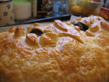смазываем тесто желтком. выпекаем 30 мин. до золотистой корочки.