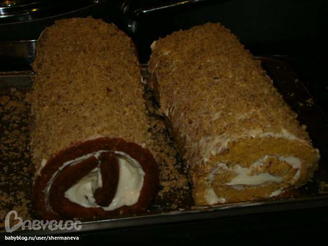 Это тот же бисквитный рулет, только с тыквой. Вкусно и не так вредно))). Его можно делать, как минимум, 3х видов: с корицей (и орехами), с орехами, с абрикосовым вареньем (мой любимый). Крем по вкусу: крим-чиз или маслянный. С другими не пробовала, но думаю, что с орехами пойдет даже заварной (сочнее получится))).