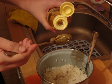 Варим рис (я варила 3 пакетика), добаляем в рис уксус (6-7 столовых ложек) и перемешиваем