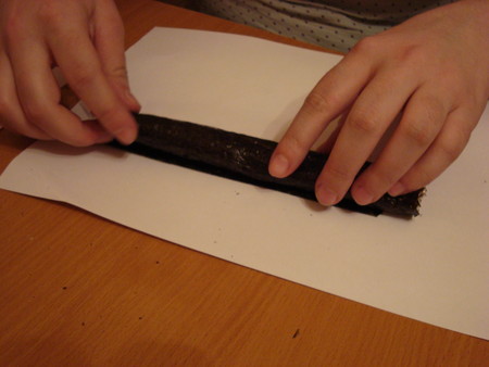Теперь заворачиваем лист (в идеале это делается на специальном деревянном коврике, но можно и на листочке бумаги):