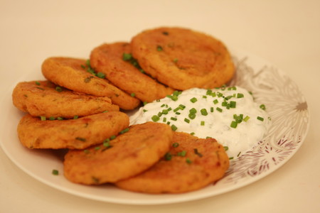 Израильская кухня.традиционные латкес, которые делают на Хануку очень похожи на картофельные драники. и конечно же латкес жарят, а эти латкес диетические:-)