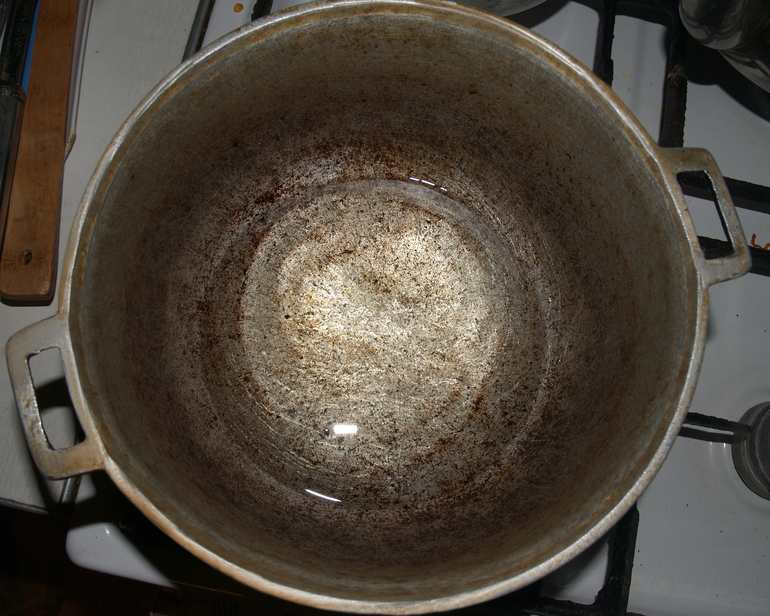 Налить масло в казан, хорошо разогреть. Примерно столько: