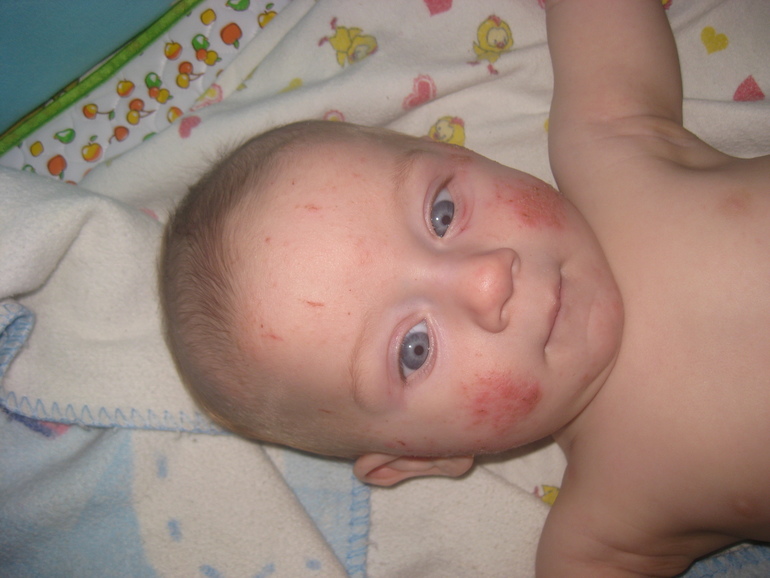 Здравствуйте! Пожалуйста, помогите разобраться!Реб-к полностью на гв со 2 дня жизни. Когда было 1,5 мес., я допустила ошибку-пила много натур.коровьего молока (как и всю беременность, я его хорошо переношу..) Малыша высыпало, но, к сожалению, я не сразу поняла, что от него.Недели 3 не проходило (врач назначил супрастин). А потом началось - периодически подсыпало то на тыкву, то на кваш.капусту, в которой оказывается был мед... В общем каждый раз супрастин. А в 3,5 мес.на щеках появились красные пятна, которые никак не проходили. Никак не могла определить, на что, каждый раз после кормления щеки становились ярче, потом немного бледнели. Я села на жесткую диету - исключила молочное, слив. и раст. масло, яйца, курицу, рыбу, все, где есть пшеница и овес, сахар. В общем, проще сказать, что я ела - гречку, фасоль, зеленые яблоки, кролика, чай черный без сахара. Даже картофель не ела или вымачивала сутки. Но щеки все равно пылали. Врач разрешила пить кефир. Стало хуже! Появились жуткие корки и шелушения. Показались аллергологу, та посветила спец.лампой и сказала, что это грибок (светилось все зеленым). Оказывается кефиром я его только подкормила! Пропили пимафуцин 10 дн. и пимафукортом мазали. Уже через 2 суток от начала лечения все прошло - остались лишь розовые покраснения в местах очагов. Радости моей не было предела, я хотя бы начала есть (не ела только молочное, хлеб и все, что с дрожжами) Но через 3 суток щеки опять запылали! (из нового съела рыбу и 1 вареное яйцо...) Снова к аллергологу - грибка нет. Выписала фенистил в каплях. Вот сейчас пьем. Да, забыла сказать, стал плохо набирать вес. За 1 мес. +1кг, за 2-ой 700г, за 3ий 500, за 4ый 300-400 от силы... Я начала уже думать на появившуюся вследствие аллергии лактазную недостаточность - он начал еще и выгибаться у груди, пукать, бросать грудь и плакать.. Сдали кал на углеводы - 1-1,65! Сдали капрограмму, кал на бакпосев, ОАК, кровь на общ. иммуноглобулин Е. Все в норме, кроме: в капрограмме нашли внеклеточный крахмал - мало, жирные кислоты - умеренно, соли жирных кислот - нет (в нормативах написано "мало"), слизь - умеренно, лейкоциты 1-0-2 п\зр.; единичные тяжи слизи, содержащие до 10 - 15 Le. В бакпосеве только золот.стафилакокк (наверное, как и у большинства деток) 3,6х10*5. В ОАК только эузинофилы 8. Еще забыла написать - малыш часто срыгивает сразу после кормления только что выпитым молоком. (по неврологии вроде нет проблем). Что с моим малышом, почему сыпет, что мне есть-не есть? я уже похудела на 7кг. Сейчас вот начала давать ему лактазар... хуже ведь не будет от фермента?