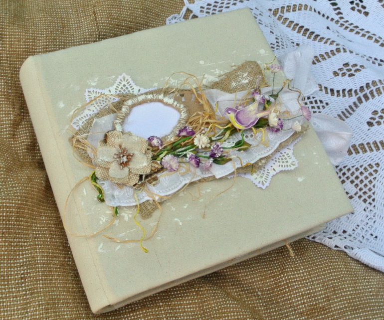Альбом размером 28х28 вмещает около 25 фото от размера 10х15 до 20х15)Ткань 100% лён-да да кстати очень приятный на ощупь и послушный))))