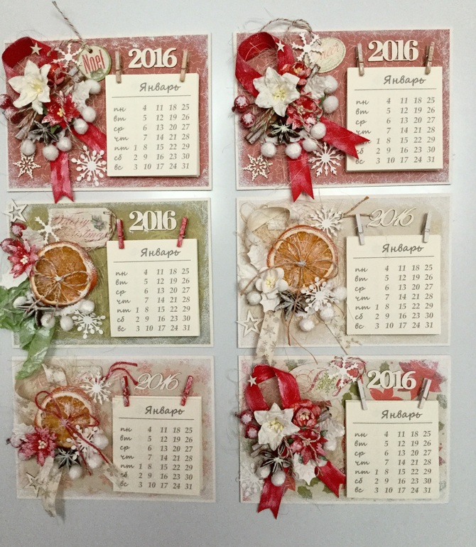 Я сделала серию календариков на магнитной ленте, и многие даже сфотографировать не успела, как мои домашние расхватали и отнесли в садики, школы и на работу). Большое спасибо Юле за календарную сетку, очень выручила, столько раз её добрым словом вспомнила:)