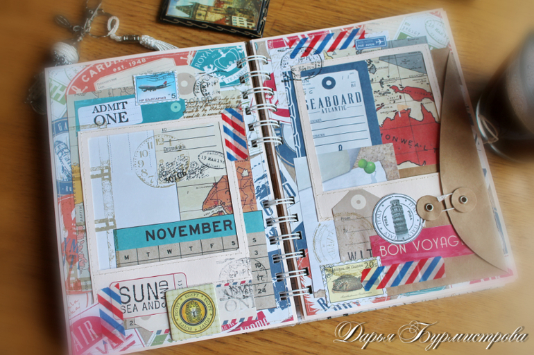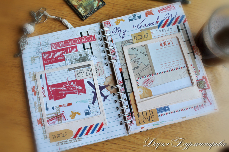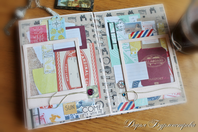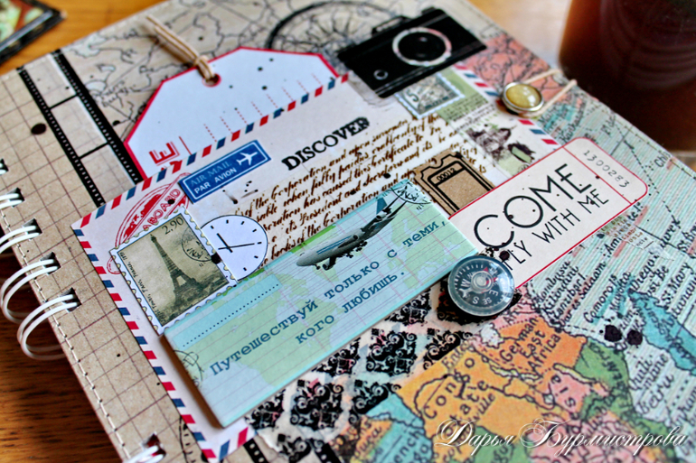 Покажу Тревел бук! Пора отпусков и путешествий навеяла создание такого блокнота-фотоальбома,все в одном! Сохранить воспоминания о поездке,сберечь билетики и просто милые сердцу безделушки,оставить небольшие записи и комментарии-все это можно и нужно делать в таких удобных классных Тревел-буках!