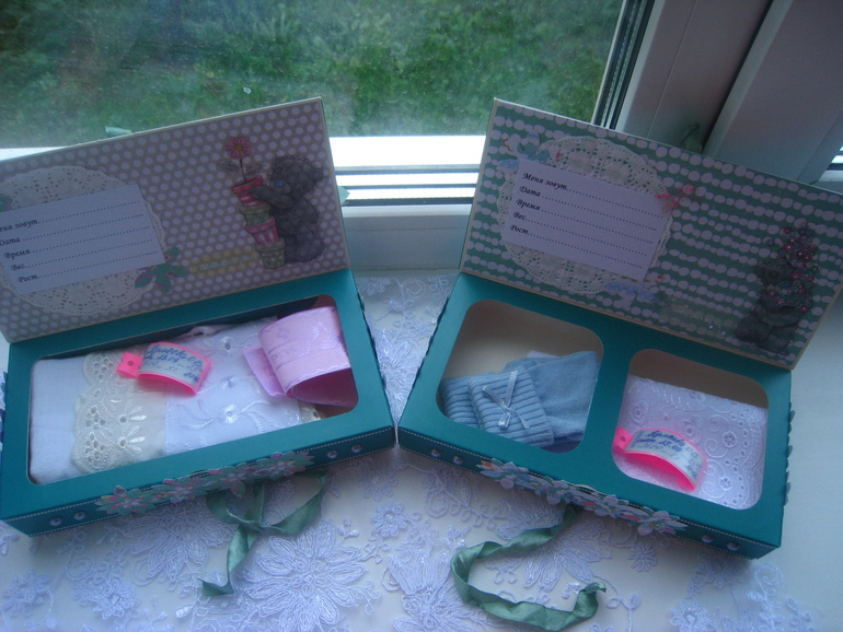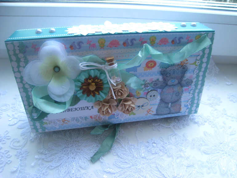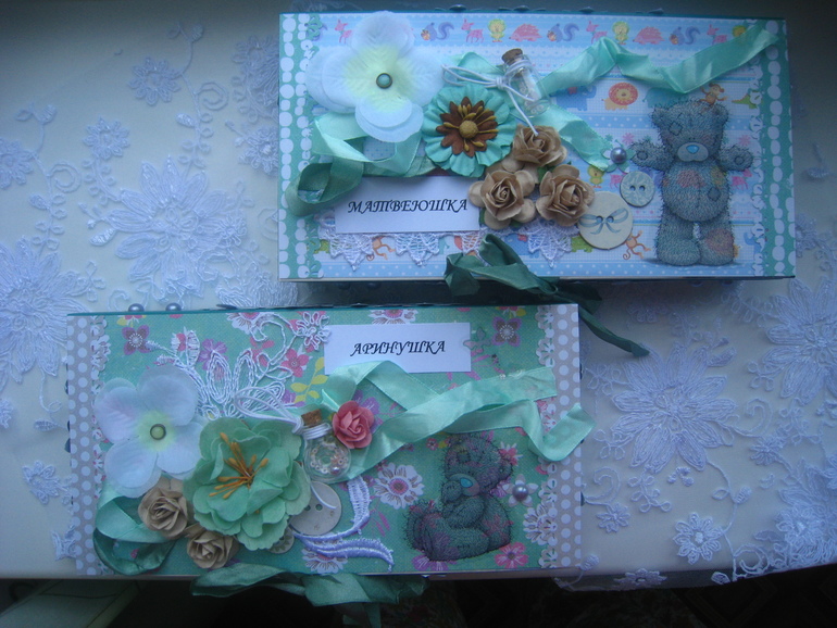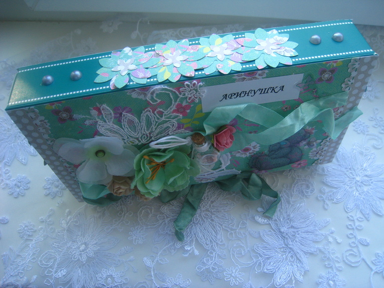 Коробки, шкатулки, комодыВсем привет! Хочу показать вам мамины сокровища в мятном цвете (очень модном в этом сезоне) для моих деток! Лежали у меня коробочки из - под конфет без дела, решила их украсить, и вот что получилось. Спасибо за просмотр!