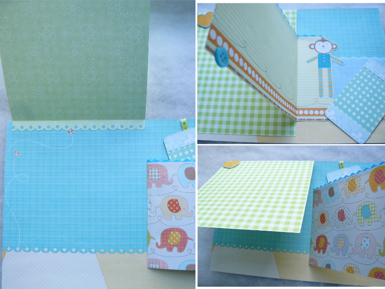Первый разворот: Много откидушек и обезьянка, выполняющая роль анкера
