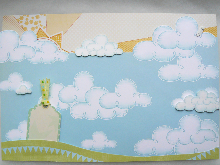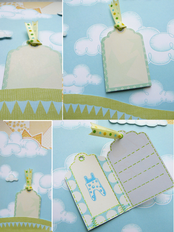Шестой. Кармашек из кальки, двусторонний тэг, кучка раскладушек и рамочка-медальон на ленте.