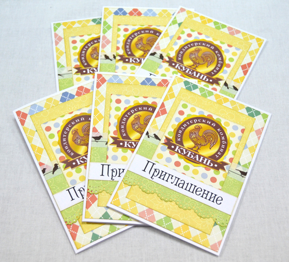 Открытки, приглашения, визиткиЕсть в нашем городе Кондитерский Комбинат "Кубань" (делает различные сладости и вкусности, если честно мне из их продукции больше всего нравится соломка соленая),