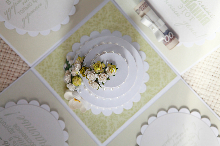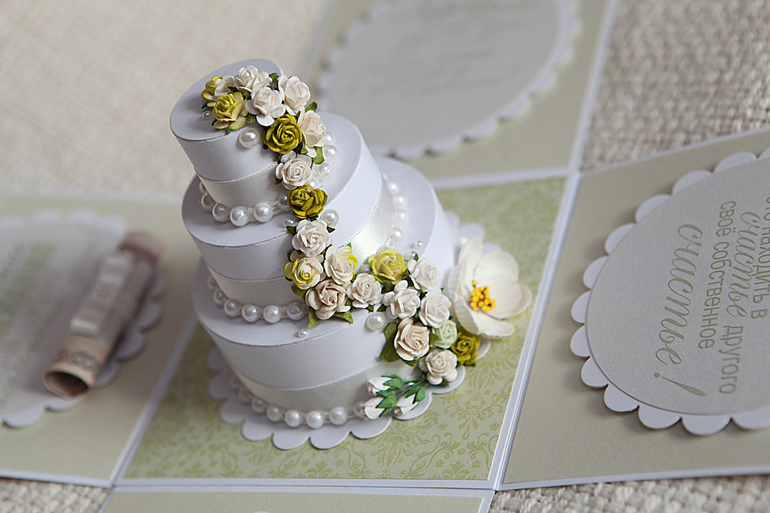 Конверты и коробки для денегСвадебная коробочка для денежного подарка в нежных бело-зелёных тонах.