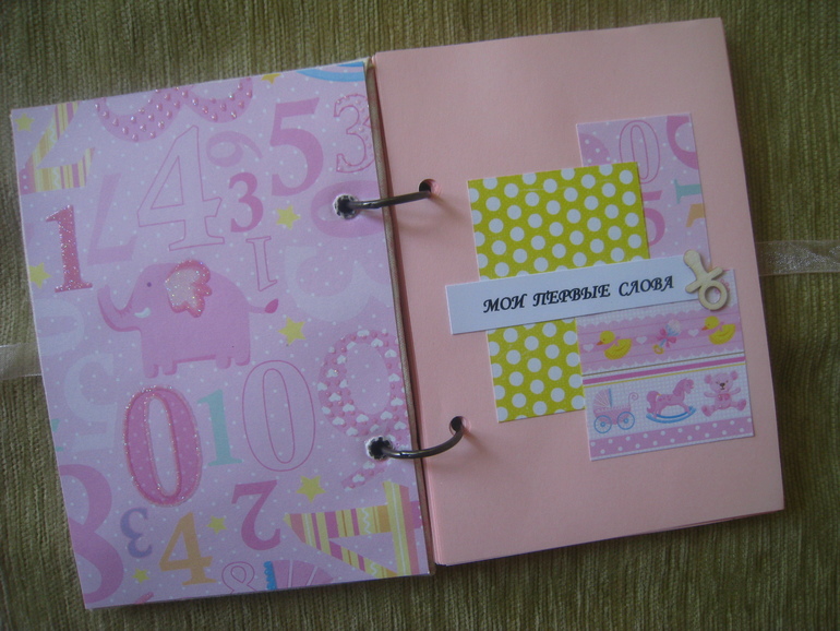 В дополнение к альбому сделала еще небольшой блокнотик для первых слов малышки!