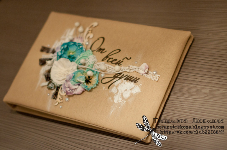 Альбомы других категорийПосле долгого перерыва надеюсь снова начать вести свой блог. А начну с такого простого альбома в бирюзовых тонах. В нем оформлена обложка, а внутри крафт-листы с отштамповками. Формат А4, обложка из ткани, механизм на кольцах, листов 20.