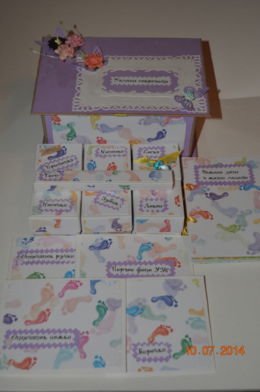 ))). Мне очень приятно, что вам понравилось. Это еще не самая большая. Еще есть больше. Коробочка для свечек от торта (большая, чтобы каждый годик можно было сохранить), для банта от выписки, под костюмчик с выписки. И это все в одну большую.)))