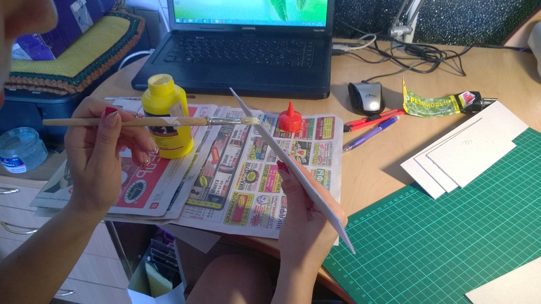 ---- сперва необходимо приклеить большие стороны. Для этого я использую ПВА момент (или любой строительный ПВА, только не канцелярский, т.к. он жидкий и плохо клеит), либо любой вонючий момент. Смотрим фото: