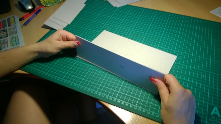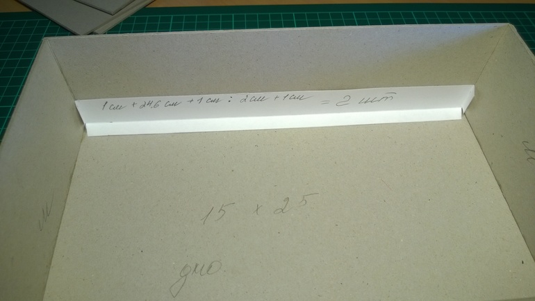 Ширина у меня внутри короба 24,6 см, добавляем по 1 см с двух сторон. Высоту я беру 2 см+1 см. На фото видна биговка. Должны получится такие детальки: