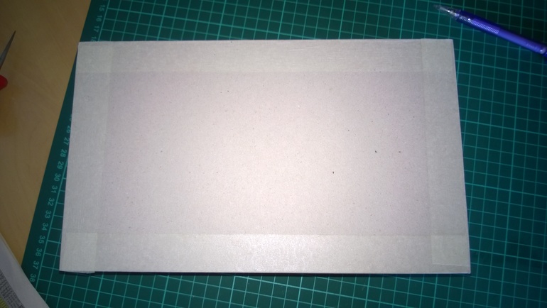 Снаружи большие и малые стороны я укрепляю малярным скотчем (так быстрее), у кого нет - то бумагой как и боковые стороны.