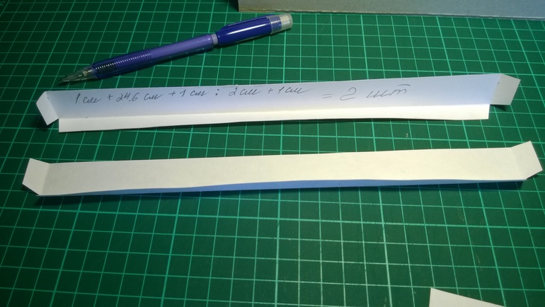 Т.е.: 15 см - 0,4 см = 14,6 см на 6,5 см У меня картон 0,2 см. Таких детальки нам нужно тоже 2 штуки.