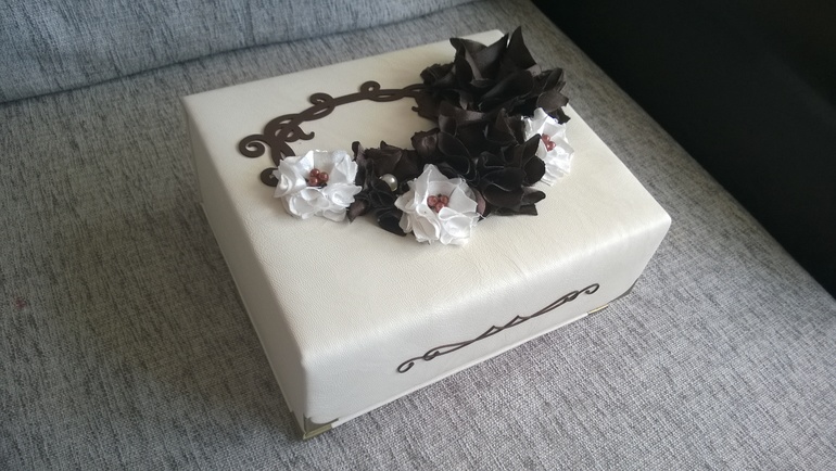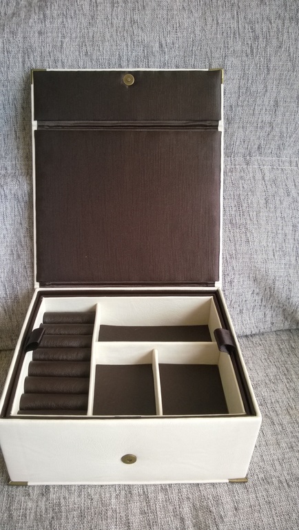 Коробки, шкатулки, комодыПока готовилась к мк - сделалась такая шкатулка классная, не скромно, но мне она очень нравится! Кожзам, но цвета делают ее богатой: шоколадный и молочный: