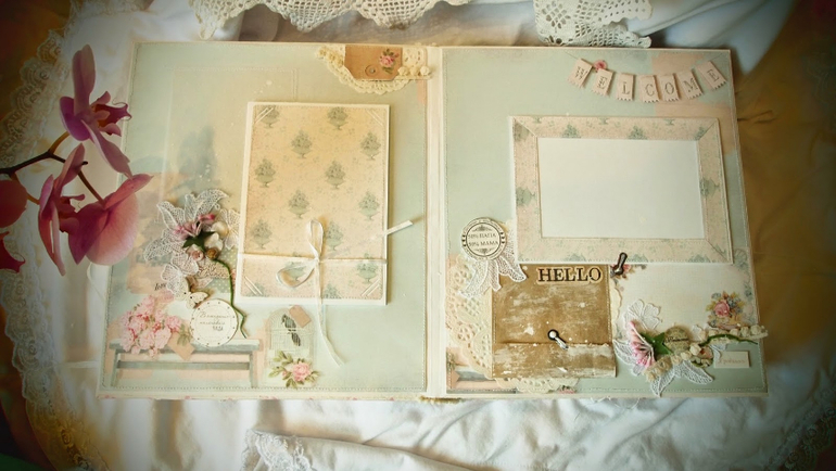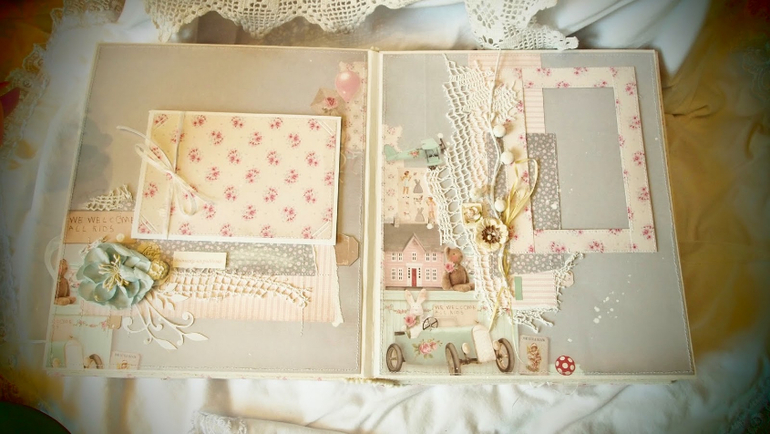 Альбомы ДетскиеПривет девочки, сегодня вам хочу показать свой альбомчик, сделанный для прекрасной малышки с чудесным именем -Ева. Альбом нежный, светлый, кружевной - такой девчачий))) Так приятно держать его в руках и хранить самые светлые воспоминания о малышке. Большой формат 25на29, альбом на 20 страниц, вмещает около 80 фоток.и еще есть карман для доп.фото. Есть местечка для бирочек, диска, локона и записей о малышке. Мягкая тканевая обложечка - новая коллекция ткани тильда.