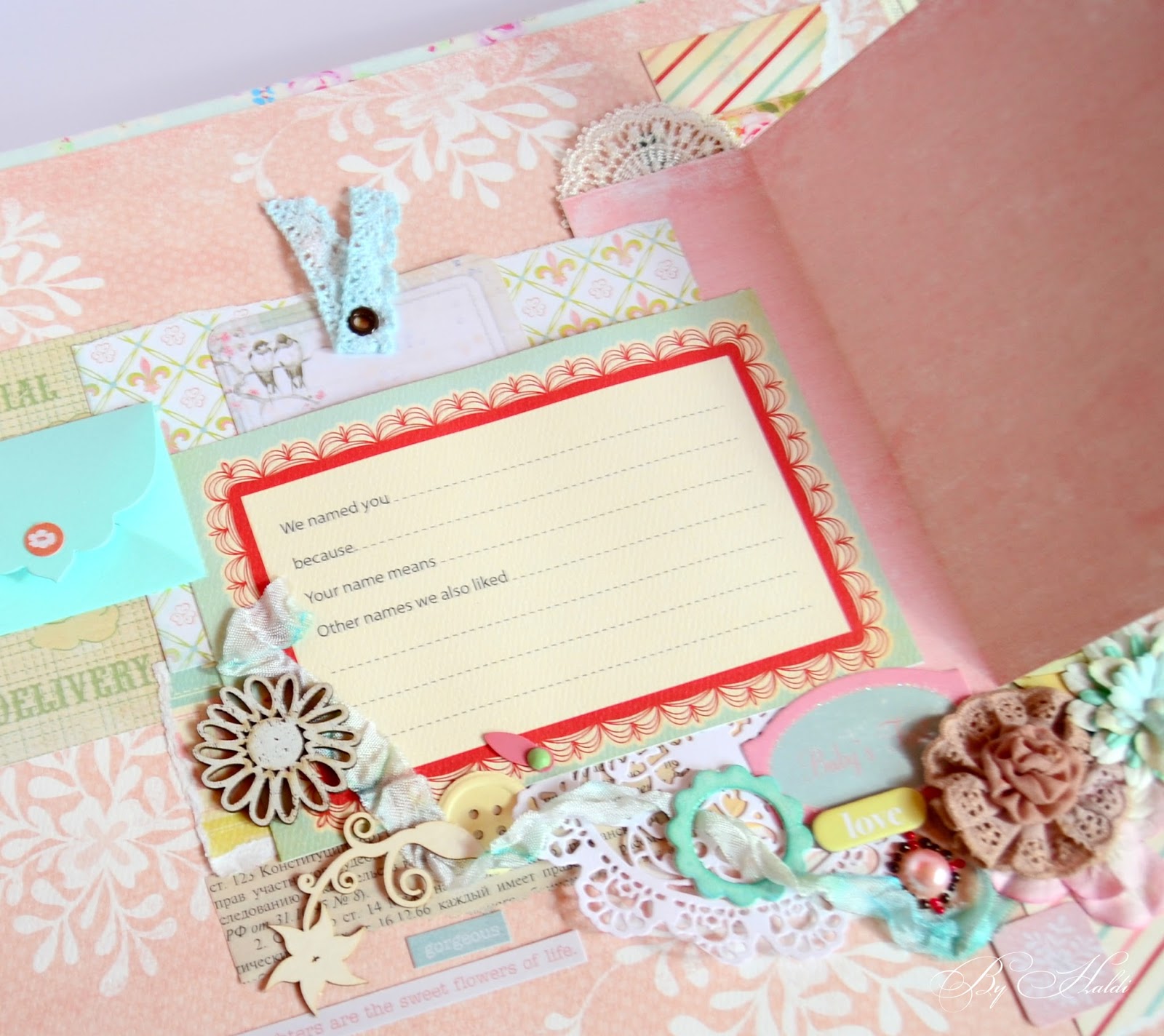 И последний, пятый разворот. Здесь тоже спрятан конвертик для фото или бирочки, например)