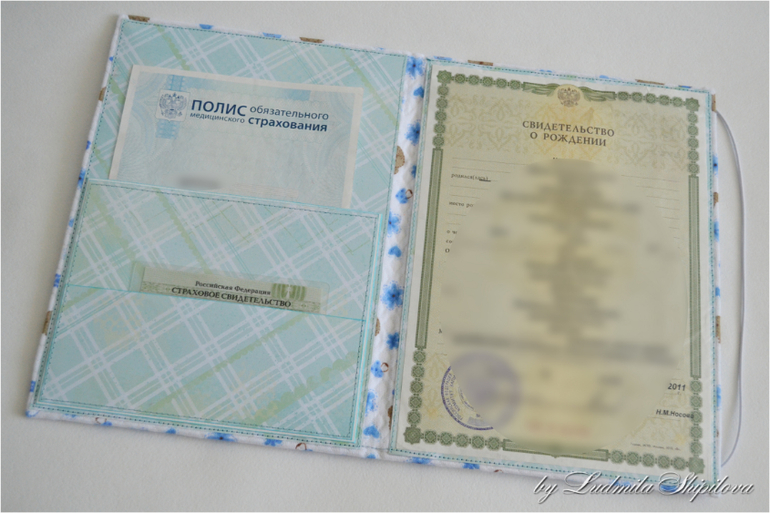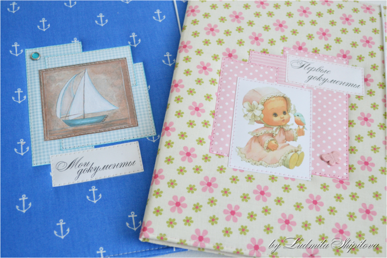 Размер 19*26 см., все в хлопковой ткани и закрываются на резиночку. Внутри файлик для свидетельства о рождении и 2 кармашка для других документов. Выполненные на заказ папочки для Василисы и Демида (сестренки и братика)