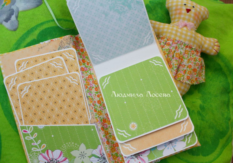 альбомчик на 15 фотографий, закрывается на резиночку, при желании можно носить в сумочке или поставить дома как рамку-пано