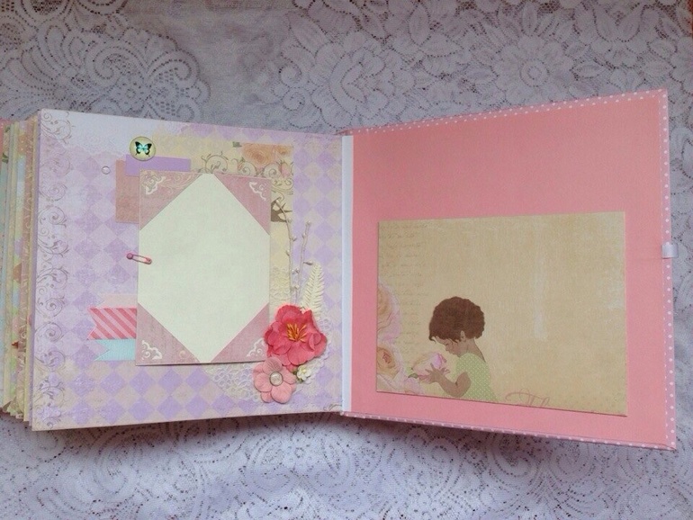 Размер альбома 26х26 см, 18 страниц, переплет Виноградовой.