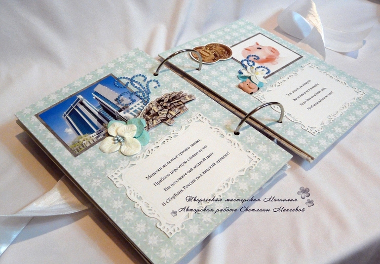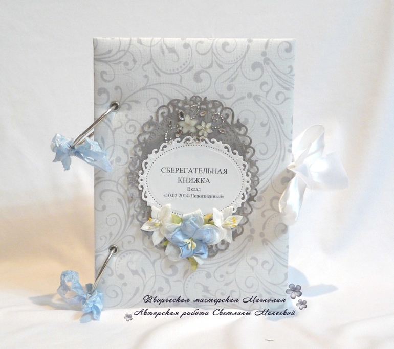 Сберегательная книжка формата А5 на кольцах (правда кольца заменила на ленты)