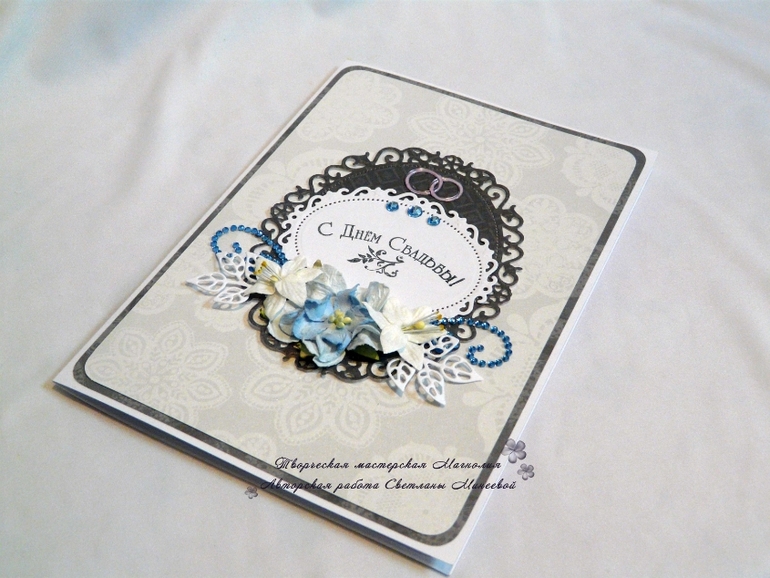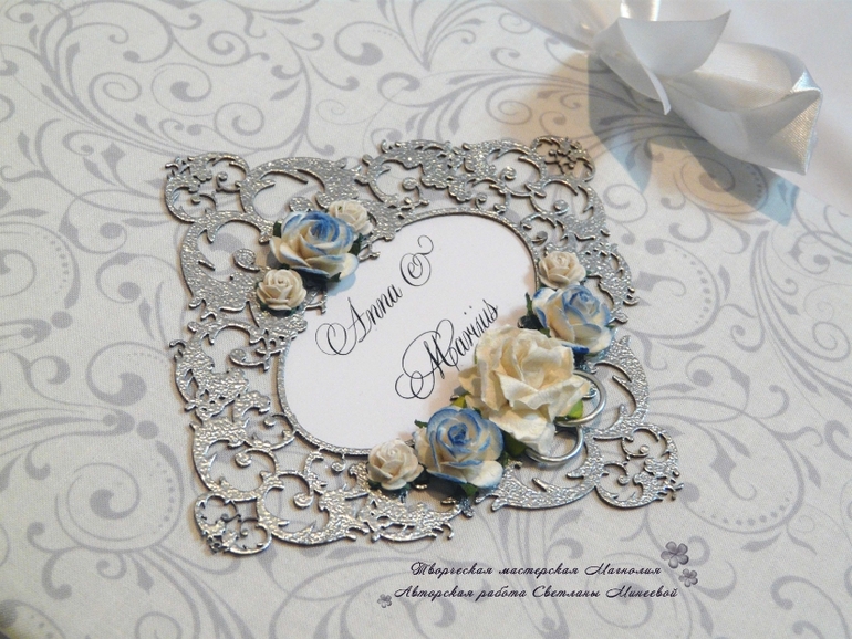 Очень все нежное!!! Приятное сочетание в цветовой гамме! Светлана, подскажите, вензеля из стразин как крепятся к бумаге? У меня лежат, не решусь использовать, боюсь испортить!!! Спасибо!