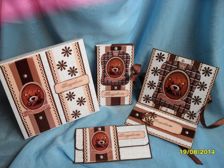 Полный комплект: коробка, открытка, шоколадница, конверт для денег