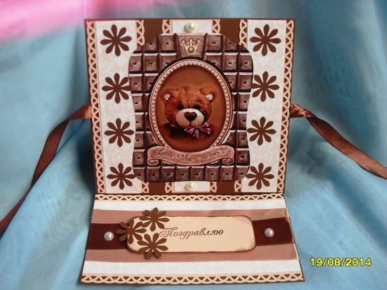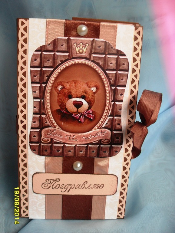 Шоколадница. Поздравительное стихотворение универсальное - подойдёт и девочке, и молодой девушке и даме старших лет. Расположено стихотворение внутри шоколадницы.