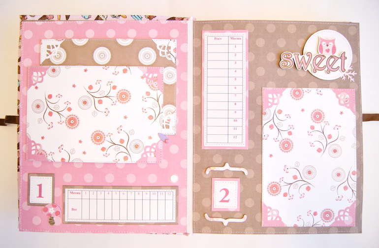 5 разворот. 7 и 8 месяц. Есть специальный блокнотик для первых звуков и слов малышки.