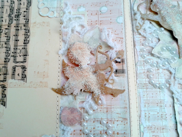 Вместо бумажных полосок соединяющих переплет взяла ткань, длина на 2 см. меньше обложки, ширина в зависимости от толщины альбома... и пришила на нее(ткань)бумажную полоску. Ширина этой полосы зависит от количества украшений в альбоме — чем больше объемных деталек тем полоса шире... Надеюсь понятно объяснила)))