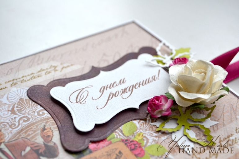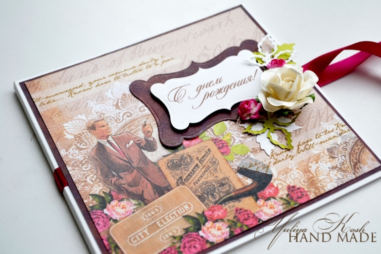 Открытки, приглашения, визиткиНе хотелось делать что угрюмое с кораблями и машинами....поэтому родилась вот такая открытка на заказ. Фотографии получились не очень яркими....погода у нас не ладится (хотя у погоды нет плохой погоды)))) света не хватает...открытка получилась вроде и строгая и красивая)) Вообщем смотрите, надеюсь Вам понравится)