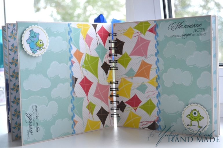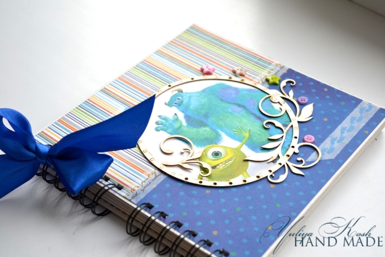 Альбомы ДетскиеСотворился альбомчик за один день в подарок замечательному мальчишке к 2-х летию)))) Очень он любит монстриков.....поэтому получился вот такой вот яркий мальчуковый альбом! Мама точно будет восторге! Правда наш парнишка приболел.....ну ничего сегодня вломимся и как подарим подарки, чтобы поднять детю настроение!!!