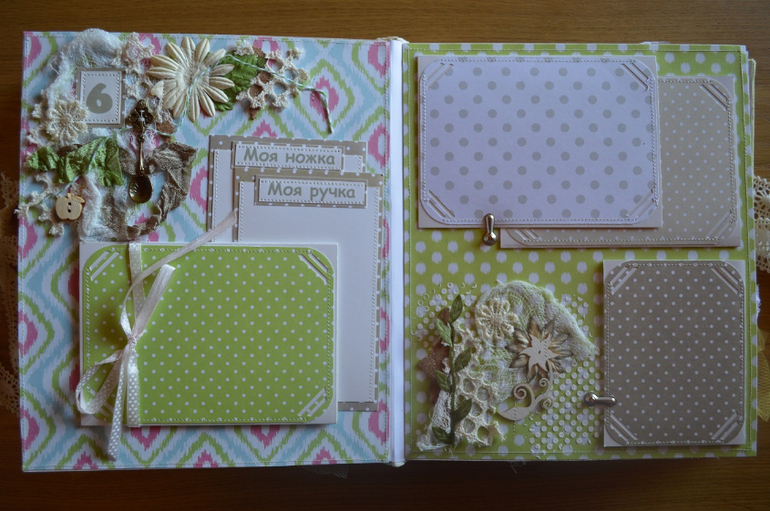 Следующий разворот - 6 месяцев. Здесь теги для ручки-ножки.
