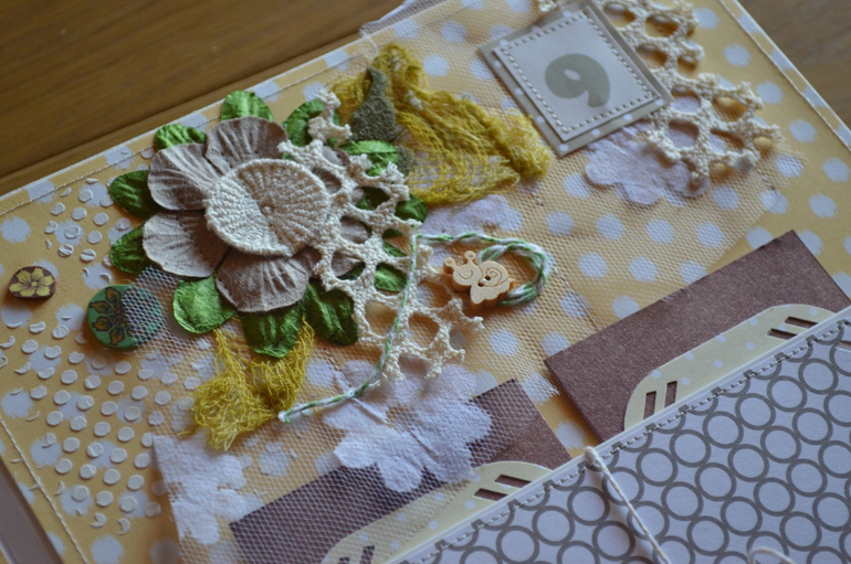 Седьмой разворот - 9 месяцев. Здесь же мешочек для зубика (пока там бусинки)