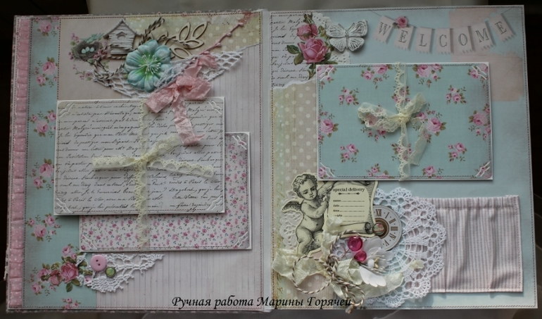 Делюсь с вами своей новой работой - альбомом для новорожденной малышки с прекрасным именем Амели!))) Заказчица, милейшей души человек, положилась на мой вкус, благодаря чему альбом получился именно таким, как я и хотела - интересным, многодетальным, в моем любимом Тильдовском стиле!))