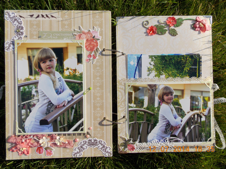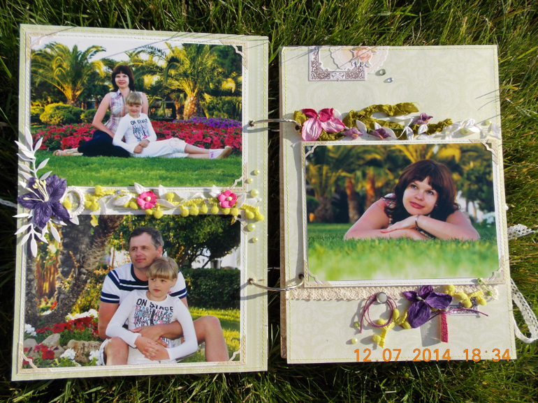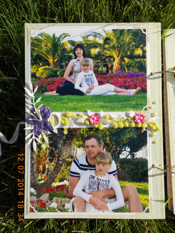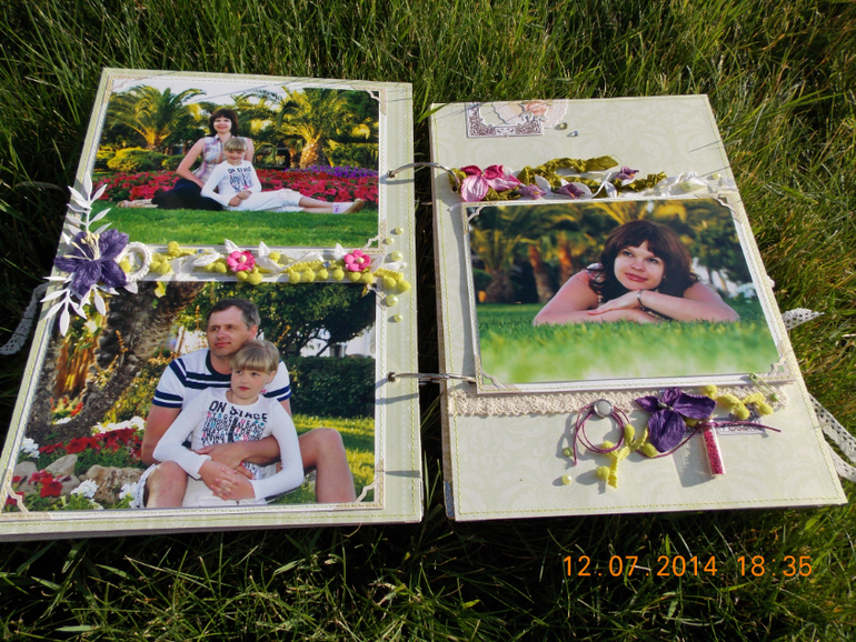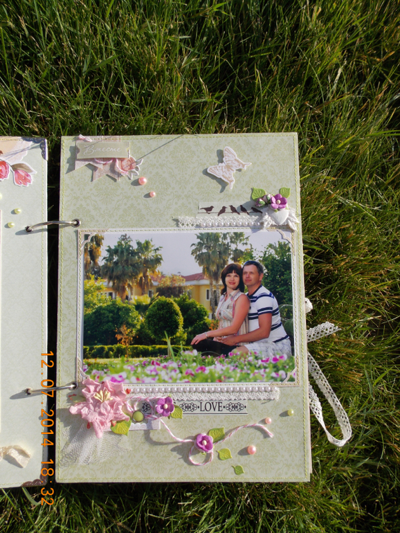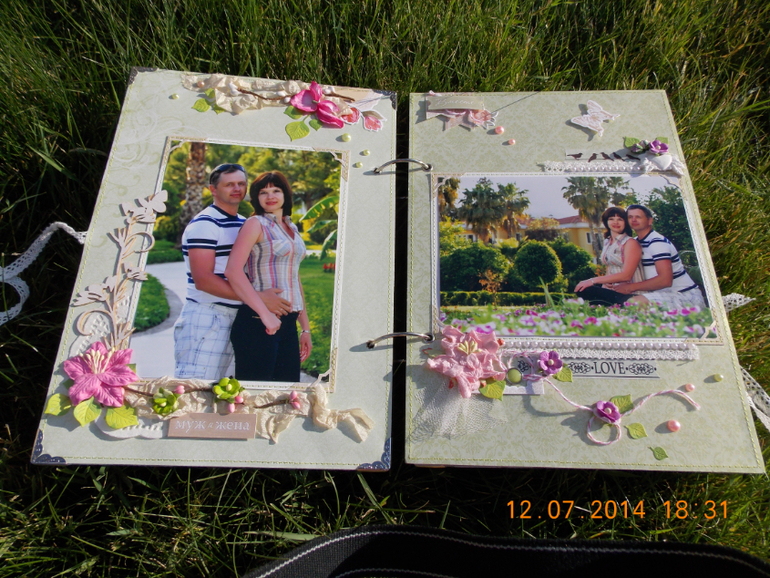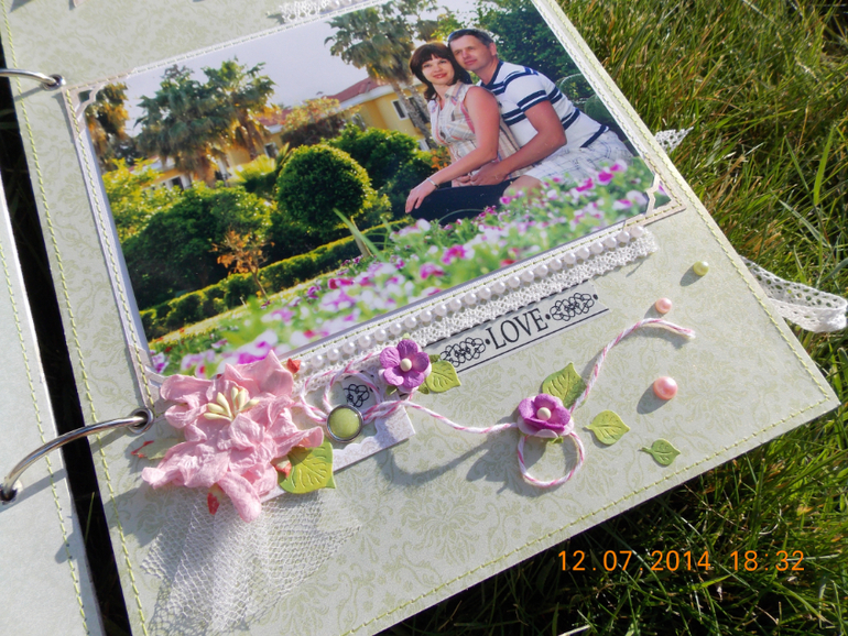 Альбомы других категорийДевулички , привет! Как дела? Как лето? У нас жара невозможная, в тени 40 градусов, на солнце аж 60, выше предельного показывает градусник на улице, дышать нечем. Да, такое у нас лето. Но сейчас не об этом. Покажу вам сегодня альбом. Делала я его перед отпуском. Дали фото с фото сессии в Турции. Я его сначала хотела морским таким забацать, но взглянув на фото, поняла быть ему романтиШным и нежным. Альбом большой, формата А4, на 15 вроде фото 15*20, а остальные в кармане на заднем форзаце. Он мне безумно нравится, надеюсь вам тоже понравится. Ну что смотрим?